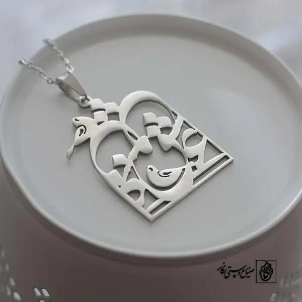 گردنبند مرغ عشق کد 210 از جنس استیل ضدزنگ و ضد حساسیت با رنگ ثابت توسط زیورآلات نگار طراحی و ساخته شده است. این گردنبند با ضخامت 1 میلیمتر در ابعاد 2.5 تا 4 سانتیمتر نسبت به سفارش مشتری قابل ساخت است.