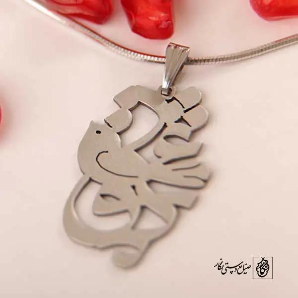 گردنبند عشق کد 550 از جنس استیل ضدزنگ و ضد حساسیت با رنگ ثابت توسط زیورآلات نگار طراحی و ساخته شده است. این گردنبند با ضخامت 1 میلیمتر در ابعاد 2.5 تا 4 سانتیمتر نسبت به سفارش مشتری قابل ساخت است. تمام محصولات در فروشگاه زیورآلات نگار بعد از خرید ساخته خواهد شد و بین 7 تا 15 روز به دست مشتریان گرامی خواهد رسید.