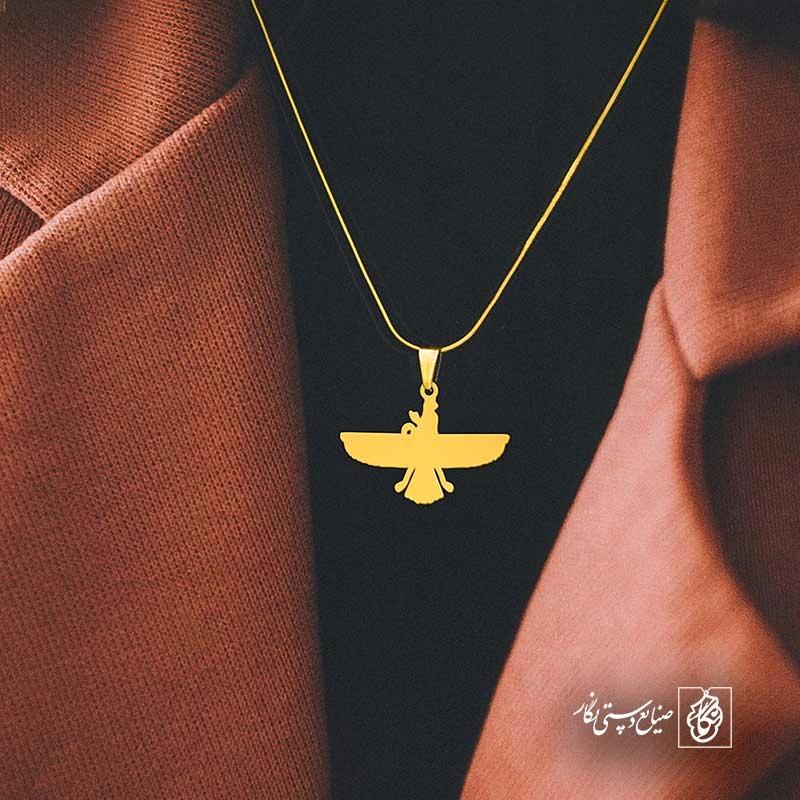 گردنبند فروهر کد 6042 از جنس استیل ضدزنگ و ضد حساسیت با رنگ ثابت توسط زیورآلات نگار طراحی و ساخته شده است. این گردنبند با ضخامت 1 میلیمتر در ابعاد 2.5 تا 4 سانتیمتر نسبت به سفارش مشتری قابل ساخت است. تمام محصولات در فروشگاه زیورآلات نگار بعد از خرید ساخته میشود و بین 7 تا 15 روز به دست شما مشتریان گرامی میرسد.