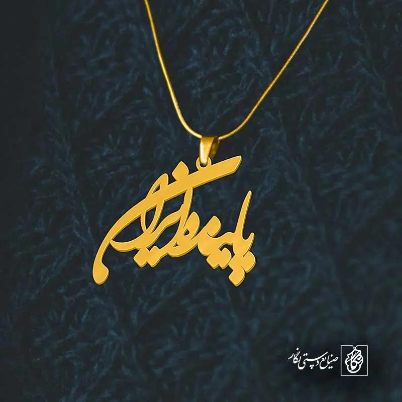 گردنبند پاینده ایران کد 6056 از جنس استیل ضدزنگ و ضد حساسیت با رنگ ثابت توسط زیورآلات نگار طراحی و ساخته شده است. این گردنبند با ضخامت 1 میلیمتر در ابعاد 2.5 تا 4 سانتیمتر نسبت به سفارش مشتری قابل ساخت است. تمام محصولات در فروشگاه زیورآلات نگار بعد از خرید ساخته میشود و بین 7 تا 15 روز به دست شما مشتریان گرامی میرسد.