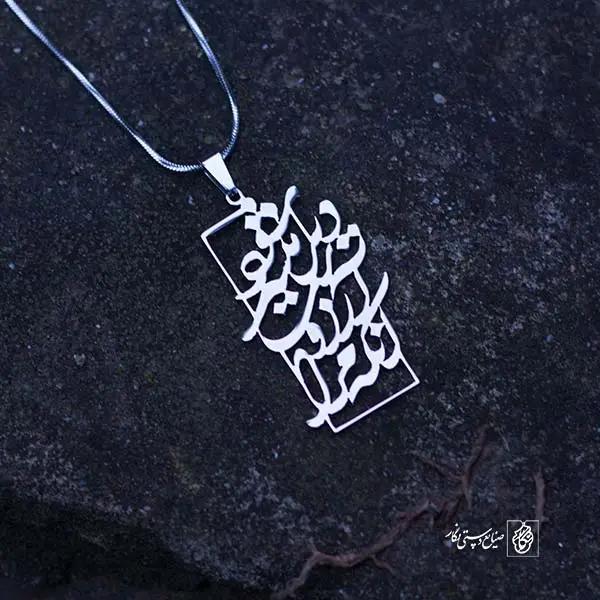 گردنبند شعر آنکه مرا آرزوست دیر میسر شود کد 392 با شمارهٔ 02147620042 داخلی 5 تماس بگیرید.