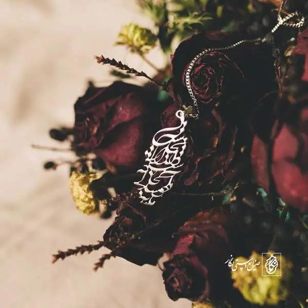 گردنبند شعر مایه خوشدلی آنجاست که دلدار آنجاست کد 409 با شمارهٔ 02147620042 داخلی 5 تماس بگیرید.