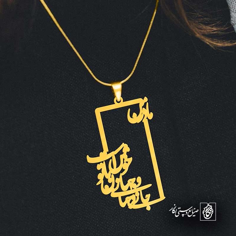 گردنبند شعر جان و جهانی و جهان با تو خوش است کد 6925 از جنس استیل ضدزنگ و ضد حساسیت با رنگ ثابت توسط زیورآلات نگار طراحی و ساخته شده است. این گردنبند با ضخامت 1 میلیمتر در ابعاد 2.5 تا 4 سانتیمتر نسبت به سفارش مشتری قابل ساخت است. تمام محصولات در فروشگاه زیورآلات نگار بعد از خرید ساخته میشود و بین 7 تا 15 روز به دست شما مشتریان گرامی میرسد.