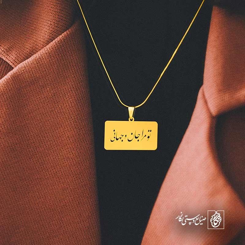 گردنبند شعر تو مرا جان و جهانی کد 7024 از جنس استیل ضدزنگ و ضد حساسیت با رنگ ثابت توسط زیورآلات نگار طراحی و ساخته شده است. این گردنبند با ضخامت 1 میلیمتر در ابعاد 2.5 تا 4 سانتیمتر نسبت به سفارش مشتری قابل ساخت است. تمام محصولات در فروشگاه زیورآلات نگار بعد از خرید ساخته میشود و بین 7 تا 15 روز به دست شما مشتریان گرامی میرسد.