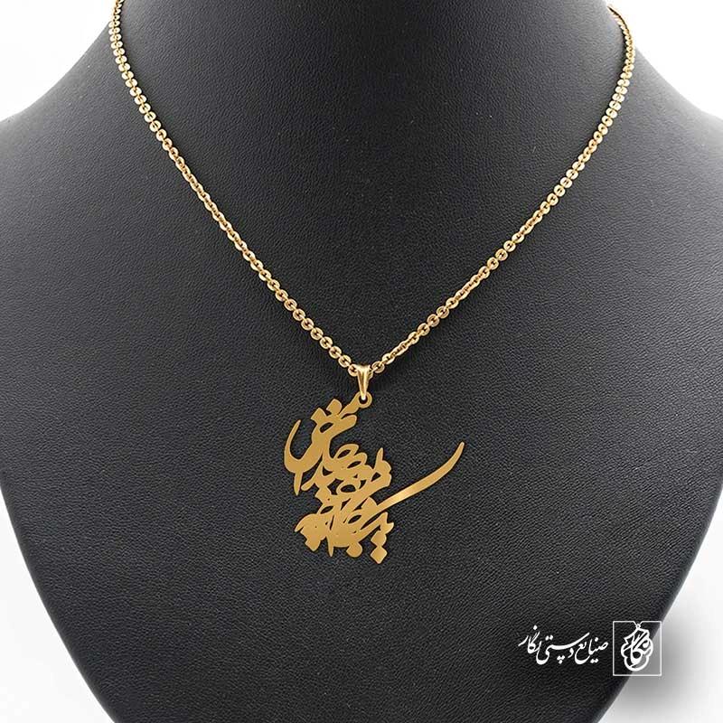 گردنبند شعر یک جان چه بود صد جان منی کد 7055 از جنس استیل ضدزنگ و ضد حساسیت با رنگ ثابت توسط زیورآلات نگار طراحی و ساخته شده است. این گردنبند با ضخامت 1 میلیمتر در ابعاد 2.5 تا 4 سانتیمتر نسبت به سفارش مشتری قابل ساخت است. تمام محصولات در فروشگاه زیورآلات نگار بعد از خرید ساخته میشود و بین 7 تا 15 روز به دست شما مشتریان گرامی میرسد.
