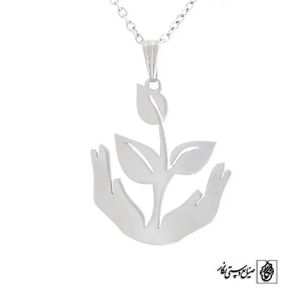 گردنبند برگ در دست کد 289 از جنس استیل ضدزنگ و ضد حساسیت با رنگ ثابت توسط زیورآلات نگار طراحی و ساخته شده است. این گردنبند با ضخامت 1 میلیمتر در ابعاد 2.5 تا 4 سانتیمتر نسبت به سفارش مشتری قابل ساخت است. تمام محصولات در فروشگاه زیورآلات نگار بعد از خرید ساخته خواهد شد و بین 7 تا 15 روز به دست مشتریان گرامی خواهد رسید.