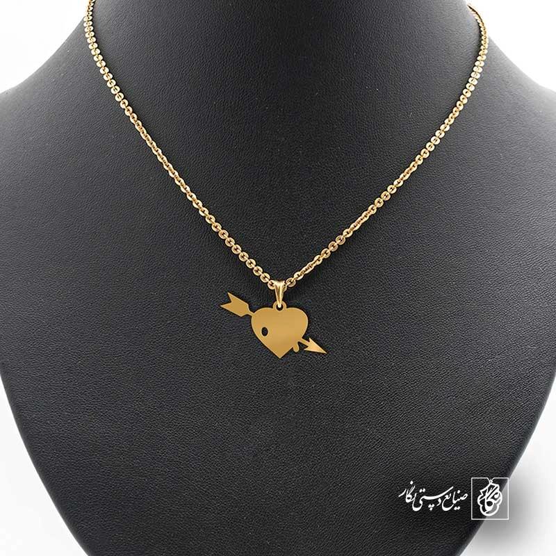 گردنبند قلب تیر کد 41434 از جنس استیل ضدزنگ و ضد حساسیت با رنگ ثابت توسط زیورآلات نگار طراحی و ساخته شده است. این گردنبند با ضخامت 1 میلیمتر در ابعاد 2.5 تا 4 سانتیمتر نسبت به سفارش مشتری قابل ساخت است. تمام محصولات در فروشگاه زیورآلات نگار بعد از خرید ساخته میشود و بین 7 تا 15 روز به دست شما مشتریان گرامی میرسد.