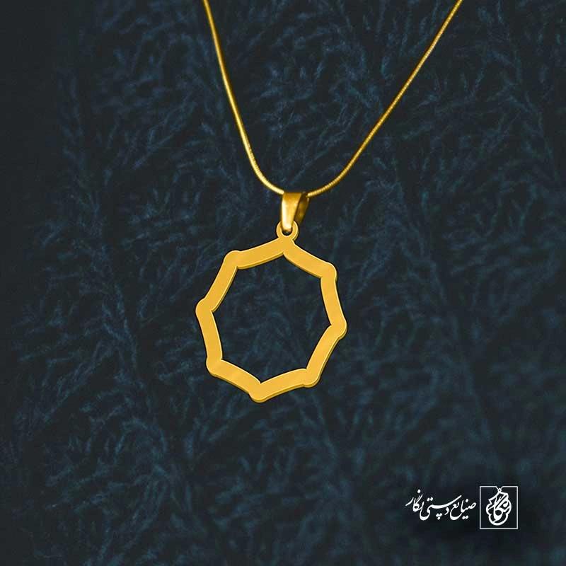 گردنبند هشت ضلعی کد 41447 از جنس استیل ضدزنگ و ضد حساسیت با رنگ ثابت توسط زیورآلات نگار طراحی و ساخته شده است. این گردنبند با ضخامت 1 میلیمتر در ابعاد 2.5 تا 4 سانتیمتر نسبت به سفارش مشتری قابل ساخت است. تمام محصولات در فروشگاه زیورآلات نگار بعد از خرید ساخته میشود و بین 7 تا 15 روز به دست شما مشتریان گرامی میرسد.
