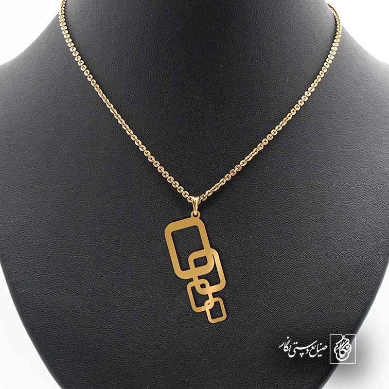 گردنبند هندسی کد 41473 از جنس استیل ضدزنگ و ضد حساسیت با رنگ ثابت توسط زیورآلات نگار طراحی و ساخته شده است. این گردنبند با ضخامت 1 میلیمتر در ابعاد 2.5 تا 4 سانتیمتر نسبت به سفارش مشتری قابل ساخت است. تمام محصولات در فروشگاه زیورآلات نگار بعد از خرید ساخته میشود و بین 7 تا 15 روز به دست شما مشتریان گرامی میرسد.