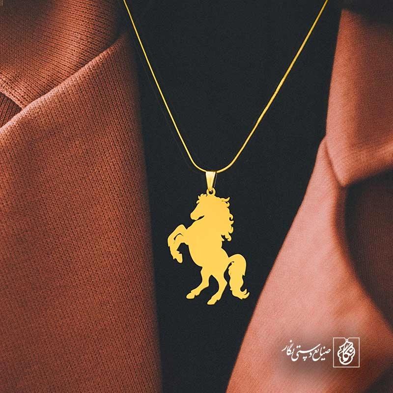 گردنبند اسب کد 41905 از جنس استیل ضدزنگ و ضد حساسیت با رنگ ثابت توسط زیورآلات نگار طراحی و ساخته شده است. این گردنبند با ضخامت 1 میلیمتر در ابعاد 2.5 تا 4 سانتیمتر نسبت به سفارش مشتری قابل ساخت است. تمام محصولات در فروشگاه زیورآلات نگار بعد از خرید ساخته میشود و بین 7 تا 15 روز به دست شما مشتریان گرامی میرسد.