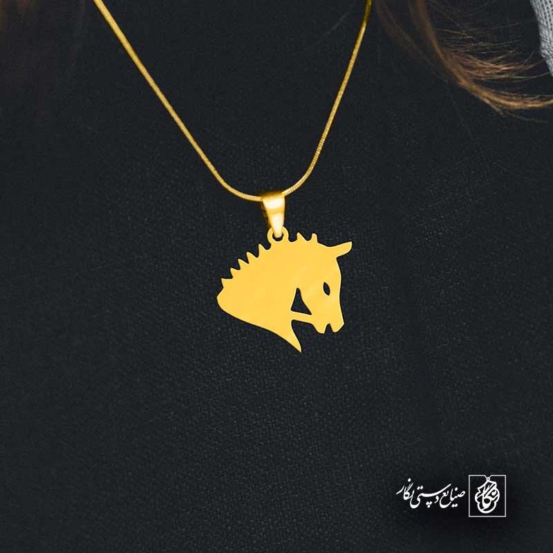 گردنبند اسب کد 41906 از جنس استیل ضدزنگ و ضد حساسیت با رنگ ثابت توسط زیورآلات نگار طراحی و ساخته شده است. این گردنبند با ضخامت 1 میلیمتر در ابعاد 2.5 تا 4 سانتیمتر نسبت به سفارش مشتری قابل ساخت است. تمام محصولات در فروشگاه زیورآلات نگار بعد از خرید ساخته میشود و بین 7 تا 15 روز به دست شما مشتریان گرامی میرسد.