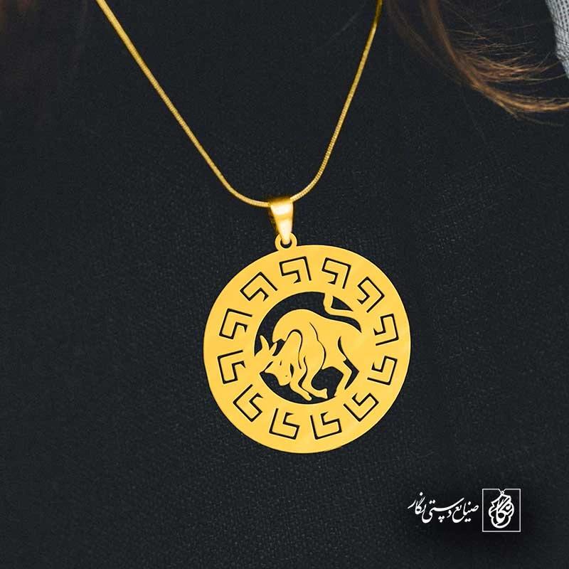 گردنبند گاو کد 41963 از جنس استیل ضدزنگ و ضد حساسیت با رنگ ثابت توسط زیورآلات نگار طراحی و ساخته شده است. این گردنبند با ضخامت 1 میلیمتر در ابعاد 2.5 تا 4 سانتیمتر نسبت به سفارش مشتری قابل ساخت است. تمام محصولات در فروشگاه زیورآلات نگار بعد از خرید ساخته میشود و بین 7 تا 15 روز به دست شما مشتریان گرامی میرسد.