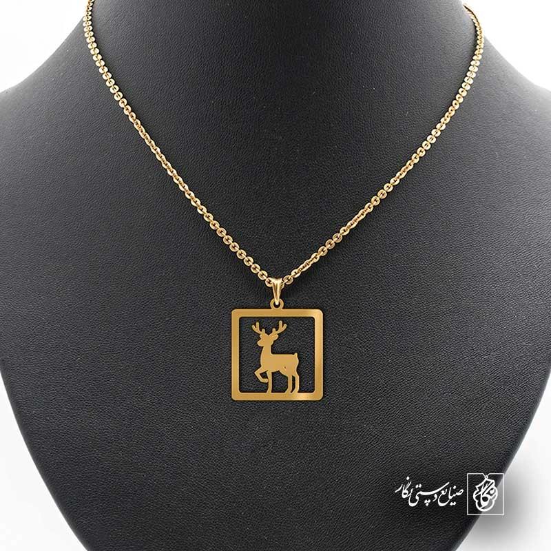گردنبند گوزن کد 41975 از جنس استیل ضدزنگ و ضد حساسیت با رنگ ثابت توسط زیورآلات نگار طراحی و ساخته شده است. این گردنبند با ضخامت 1 میلیمتر در ابعاد 2.5 تا 4 سانتیمتر نسبت به سفارش مشتری قابل ساخت است. تمام محصولات در فروشگاه زیورآلات نگار بعد از خرید ساخته میشود و بین 7 تا 15 روز به دست شما مشتریان گرامی میرسد.