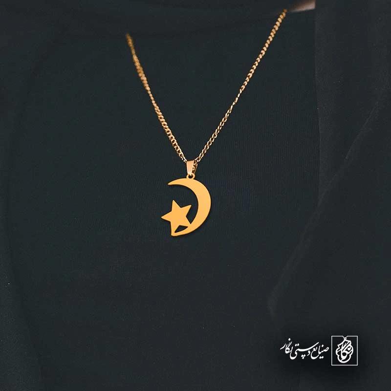 گردنبند ماه و ستاره کد 43152 از جنس استیل ضدزنگ و ضد حساسیت با رنگ ثابت توسط زیورآلات نگار طراحی و ساخته شده است. این گردنبند با ضخامت 1 میلیمتر در ابعاد 2.5 تا 4 سانتیمتر نسبت به سفارش مشتری قابل ساخت است. تمام محصولات در فروشگاه زیورآلات نگار بعد از خرید ساخته میشود و بین 7 تا 15 روز به دست شما مشتریان گرامی میرسد.
