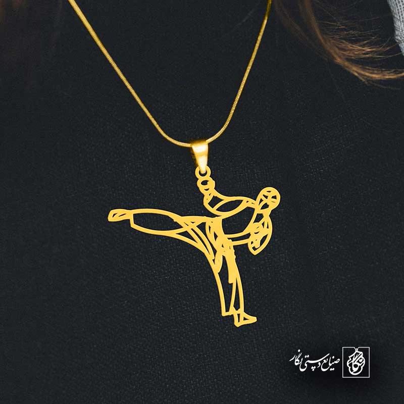 گردنبند کاراته کد 43253 از جنس استیل ضدزنگ و ضد حساسیت با رنگ ثابت توسط زیورآلات نگار طراحی و ساخته شده است. این گردنبند با ضخامت 1 میلیمتر در ابعاد 2.5 تا 4 سانتیمتر نسبت به سفارش مشتری قابل ساخت است. تمام محصولات در فروشگاه زیورآلات نگار بعد از خرید ساخته میشود و بین 7 تا 15 روز به دست شما مشتریان گرامی میرسد.