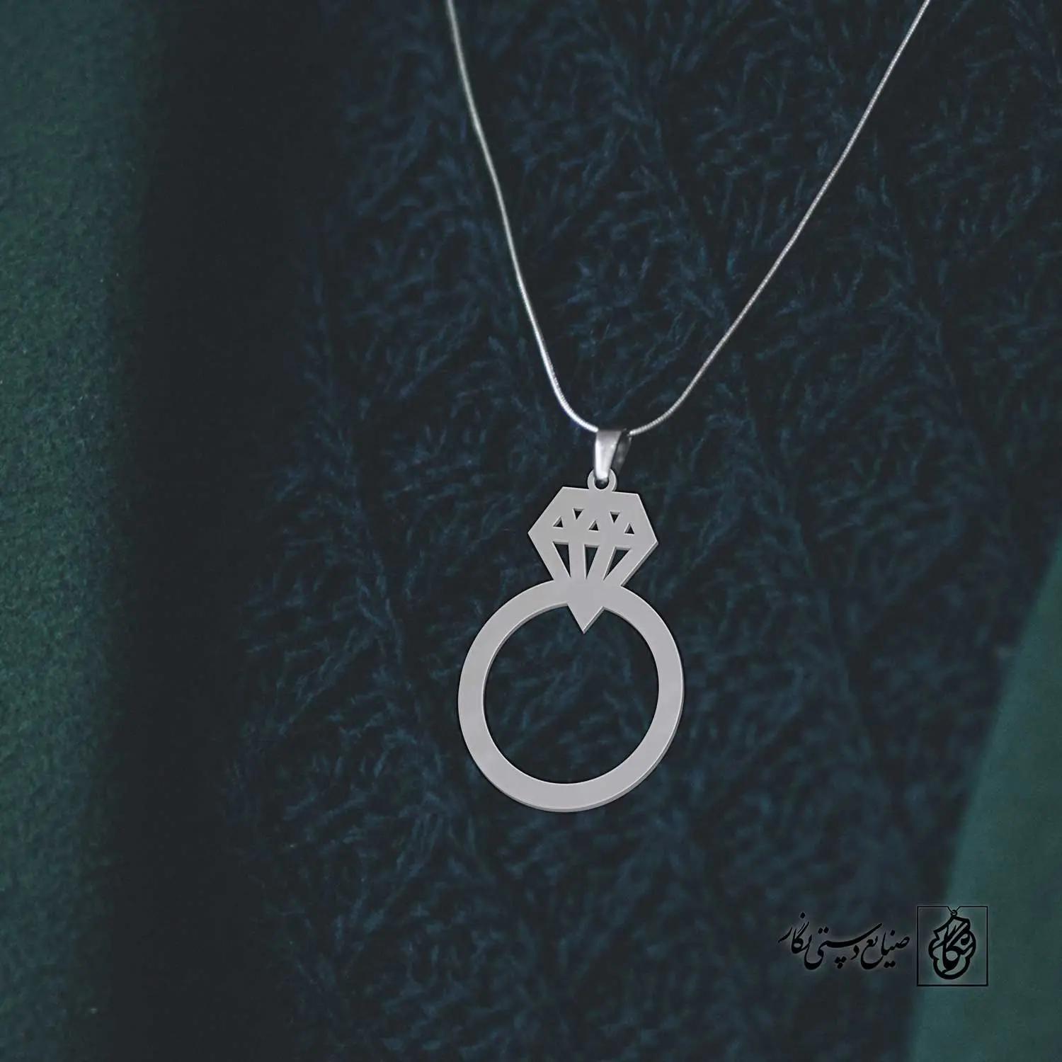 گردنبند انگشتر الماس کد 40026 از جنس استیل ضدزنگ و ضد حساسیت با رنگ ثابت توسط زیورآلات نگار طراحی و ساخته شده است. این گردنبند با ضخامت 1 میلیمتر در ابعاد 2.5 تا 4 سانتیمتر نسبت به سفارش مشتری قابل ساخت است. تمام محصولات در فروشگاه زیورآلات نگار بعد از خرید ساخته خواهد شد و بین 7 تا 15 روز به دست مشتریان گرامی خواهد رسید.