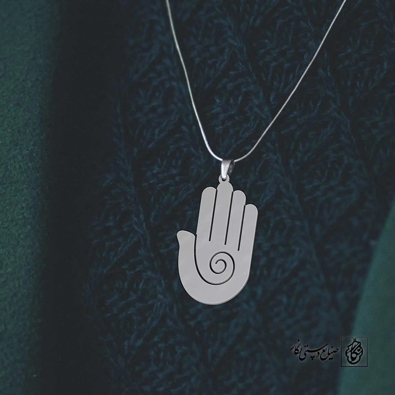 گردنبند دست خمسه کد 40053 از جنس استیل ضدزنگ و ضد حساسیت با رنگ ثابت توسط زیورآلات نگار طراحی و ساخته شده است. این گردنبند با ضخامت 1 میلیمتر در ابعاد 2.5 تا 4 سانتیمتر نسبت به سفارش مشتری قابل ساخت است. تمام محصولات در فروشگاه زیورآلات نگار بعد از خرید ساخته خواهد شد و بین 7 تا 15 روز به دست مشتریان گرامی خواهد رسید.