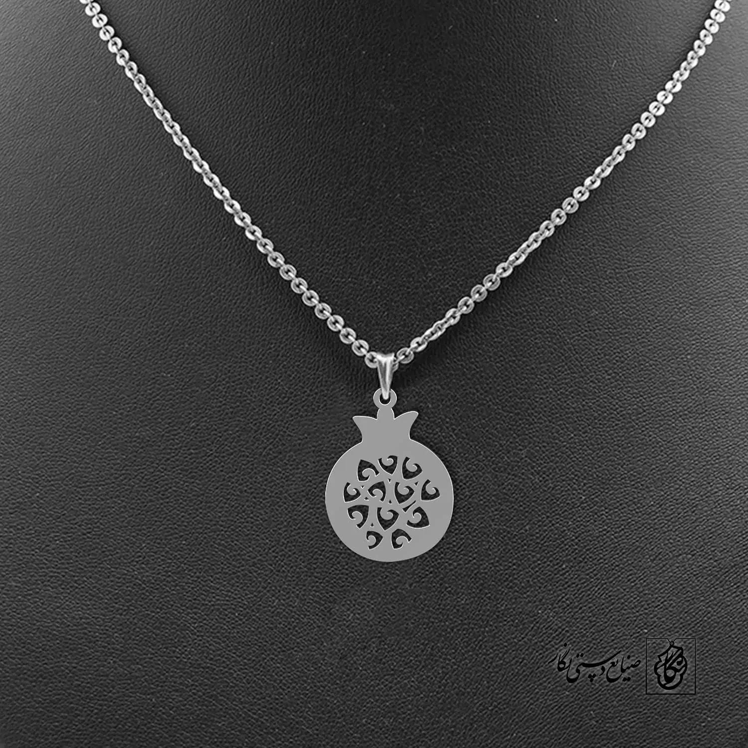 گردنبند انار کد 40302 از جنس استیل ضدزنگ و ضد حساسیت با رنگ ثابت توسط زیورآلات نگار طراحی و ساخته شده است. این گردنبند با ضخامت 1 میلیمتر در ابعاد 2.5 تا 4 سانتیمتر نسبت به سفارش مشتری قابل ساخت است. تمام محصولات در فروشگاه زیورآلات نگار بعد از خرید ساخته خواهد شد و بین 7 تا 15 روز به دست مشتریان گرامی خواهد رسید.