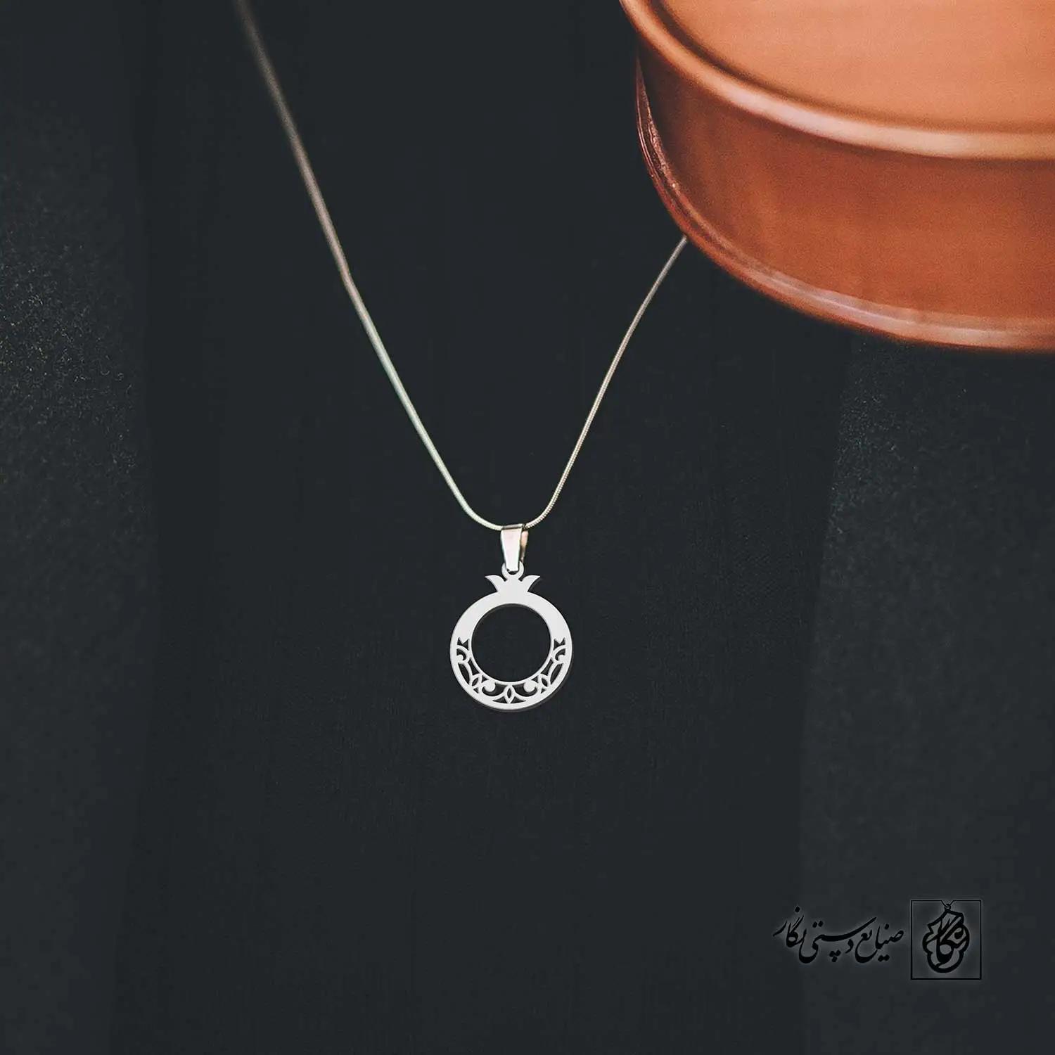 گردنبند انار قاب کد 40308 از جنس استیل ضدزنگ و ضد حساسیت با رنگ ثابت توسط زیورآلات نگار طراحی و ساخته شده است. این گردنبند با ضخامت 1 میلیمتر در ابعاد 2.5 تا 4 سانتیمتر نسبت به سفارش مشتری قابل ساخت است. تمام محصولات در فروشگاه زیورآلات نگار بعد از خرید ساخته خواهد شد و بین 7 تا 15 روز به دست مشتریان گرامی خواهد رسید.