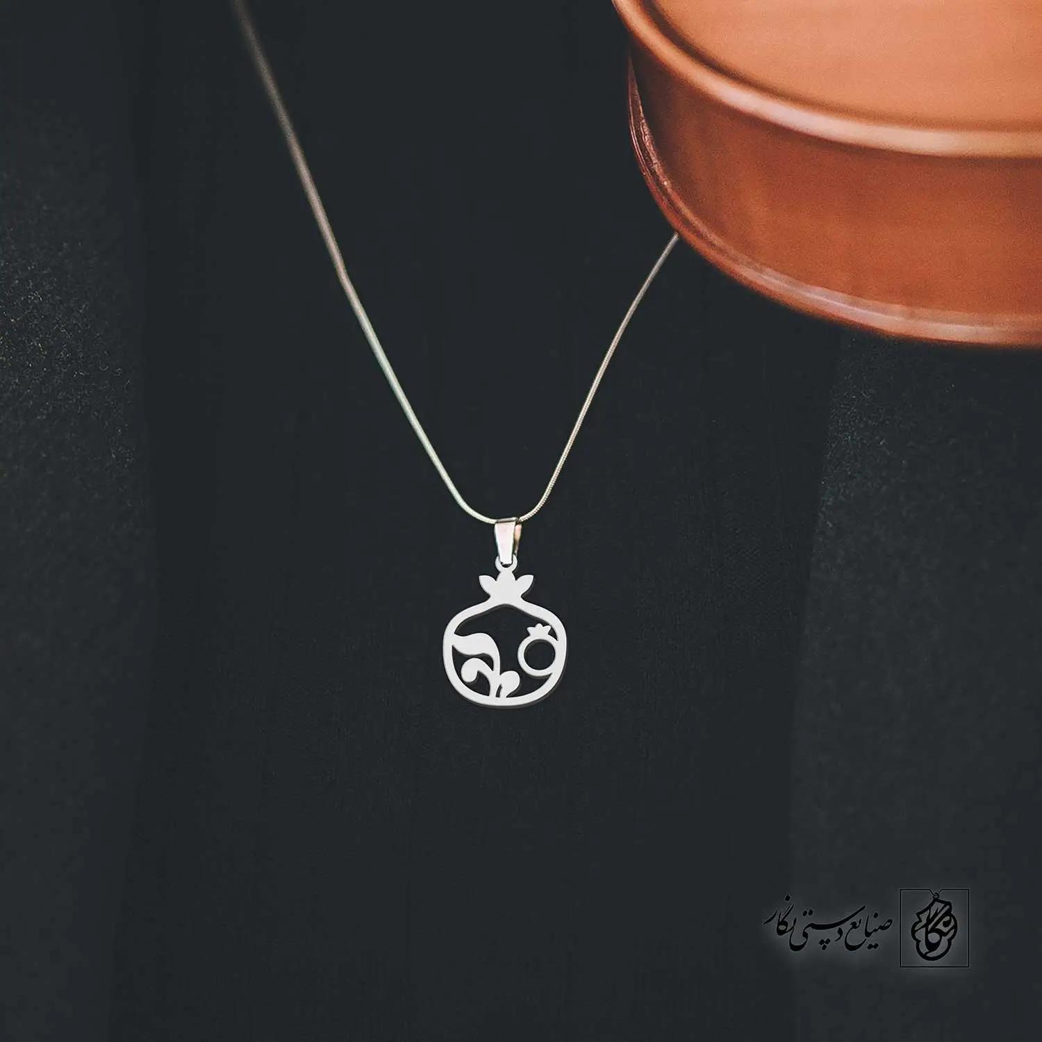 گردنبند انار کد 40314 از جنس استیل ضدزنگ و ضد حساسیت با رنگ ثابت توسط زیورآلات نگار طراحی و ساخته شده است. این گردنبند با ضخامت 1 میلیمتر در ابعاد 2.5 تا 4 سانتیمتر نسبت به سفارش مشتری قابل ساخت است. تمام محصولات در فروشگاه زیورآلات نگار بعد از خرید ساخته خواهد شد و بین 7 تا 15 روز به دست مشتریان گرامی خواهد رسید.