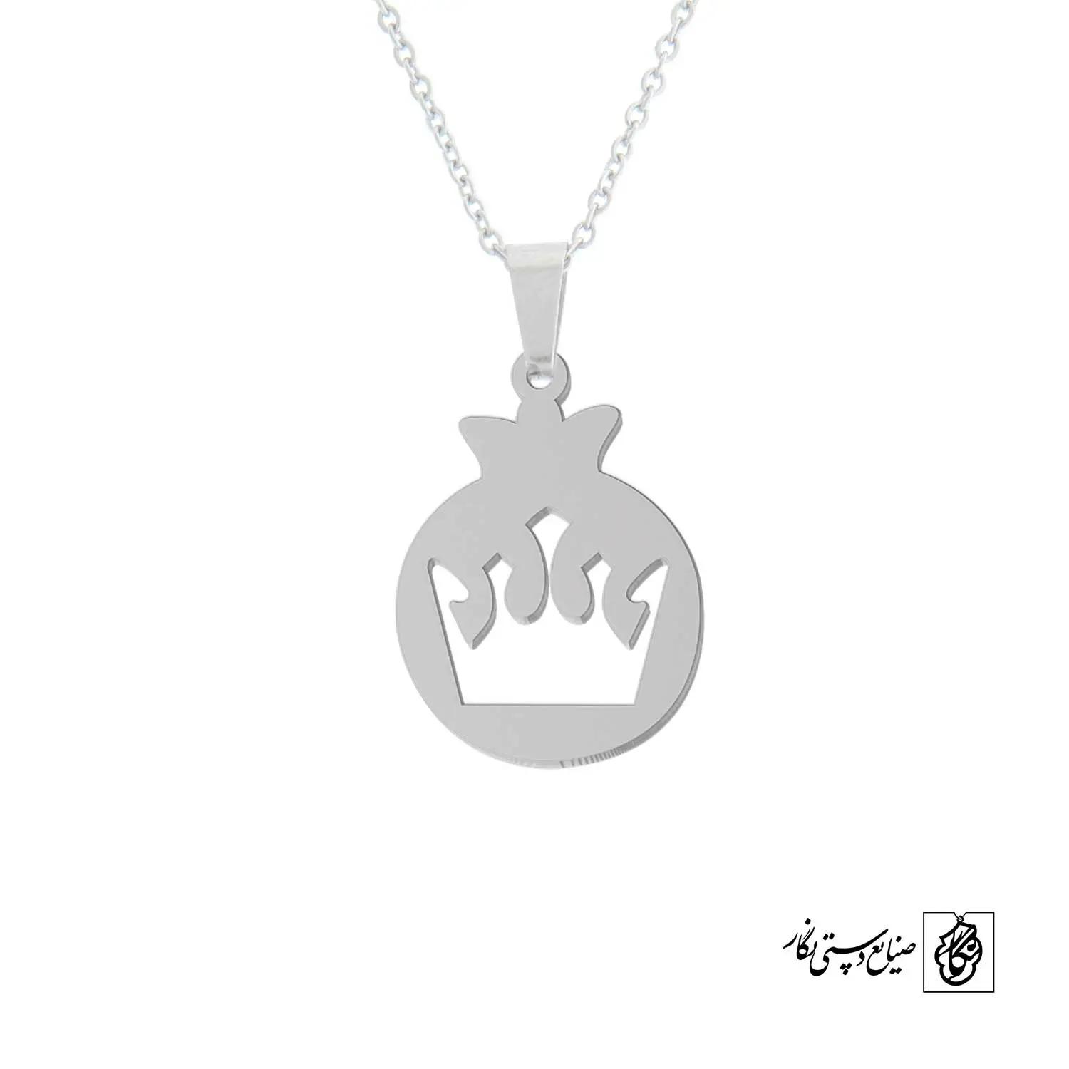 گردنبند انار تاج کد 40394 از جنس استیل ضدزنگ و ضد حساسیت با رنگ ثابت توسط زیورآلات نگار طراحی و ساخته شده است. این گردنبند با ضخامت 1 میلیمتر در ابعاد 2.5 تا 4 سانتیمتر نسبت به سفارش مشتری قابل ساخت است. تمام محصولات در فروشگاه زیورآلات نگار بعد از خرید ساخته خواهد شد و بین 7 تا 15 روز به دست مشتریان گرامی خواهد رسید.