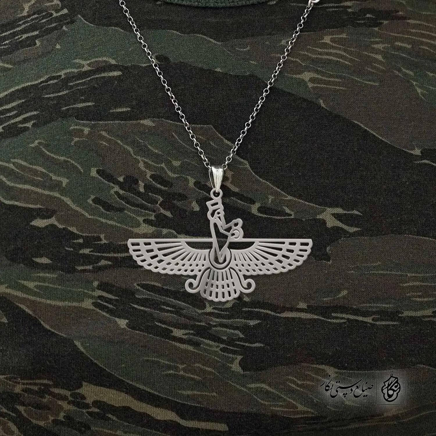 گردنبند فروهر کد 40490 از جنس استیل ضدزنگ و ضد حساسیت با رنگ ثابت توسط زیورآلات نگار طراحی و ساخته شده است. این گردنبند با ضخامت 1 میلیمتر در ابعاد 2.5 تا 4 سانتیمتر نسبت به سفارش مشتری قابل ساخت است. تمام محصولات در فروشگاه زیورآلات نگار بعد از خرید ساخته خواهد شد و بین 7 تا 15 روز به دست مشتریان گرامی خواهد رسید.