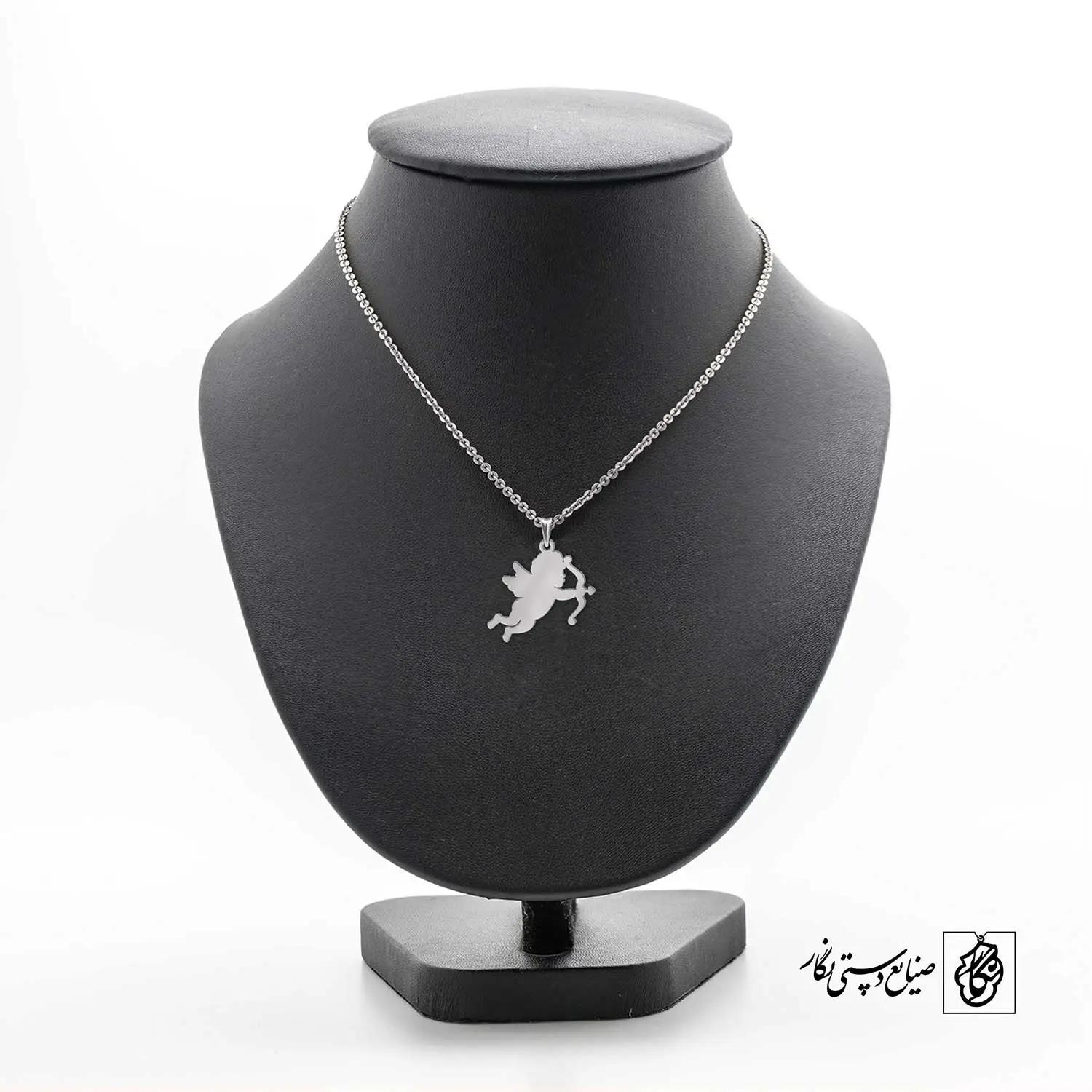 گردنبند فرشته کد 40496 از جنس استیل ضدزنگ و ضد حساسیت با رنگ ثابت توسط زیورآلات نگار طراحی و ساخته شده است. این گردنبند با ضخامت 1 میلیمتر در ابعاد 2.5 تا 4 سانتیمتر نسبت به سفارش مشتری قابل ساخت است. تمام محصولات در فروشگاه زیورآلات نگار بعد از خرید ساخته خواهد شد و بین 7 تا 15 روز به دست مشتریان گرامی خواهد رسید.