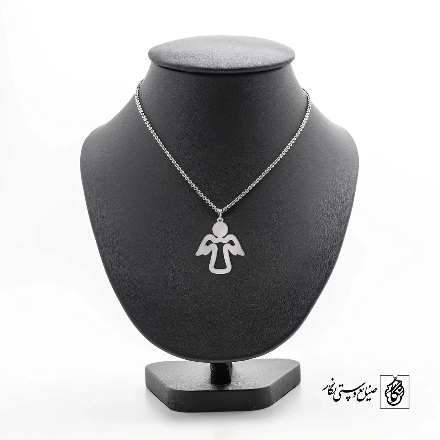 گردنبند فرشته کد 40511 از جنس استیل ضدزنگ و ضد حساسیت با رنگ ثابت توسط زیورآلات نگار طراحی و ساخته شده است. این گردنبند با ضخامت 1 میلیمتر در ابعاد 2.5 تا 4 سانتیمتر نسبت به سفارش مشتری قابل ساخت است. تمام محصولات در فروشگاه زیورآلات نگار بعد از خرید ساخته خواهد شد و بین 7 تا 15 روز به دست مشتریان گرامی خواهد رسید.