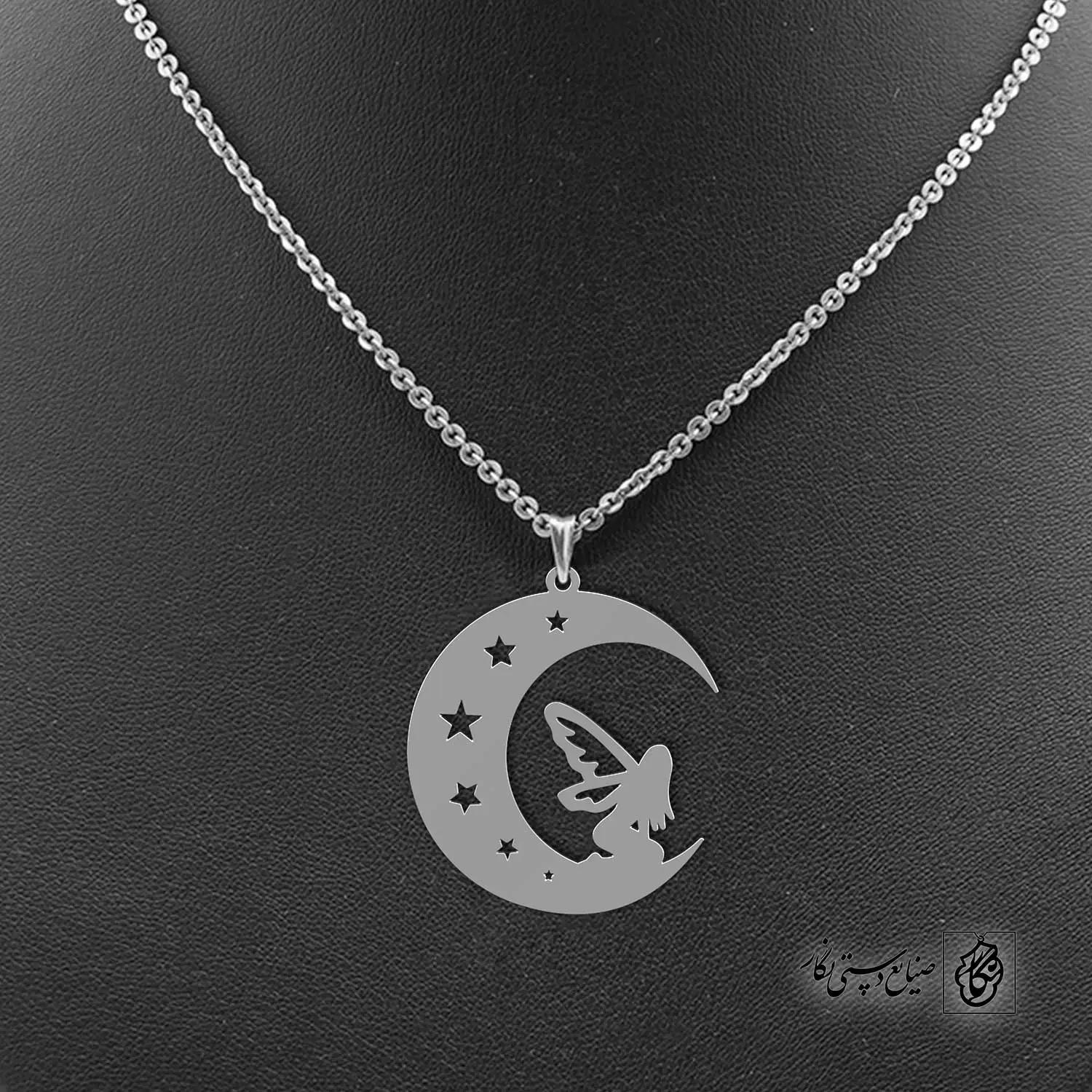 گردنبند ماه فرشته کد 40513 از جنس استیل ضدزنگ و ضد حساسیت با رنگ ثابت توسط زیورآلات نگار طراحی و ساخته شده است. این گردنبند با ضخامت 1 میلیمتر در ابعاد 2.5 تا 4 سانتیمتر نسبت به سفارش مشتری قابل ساخت است. تمام محصولات در فروشگاه زیورآلات نگار بعد از خرید ساخته خواهد شد و بین 7 تا 15 روز به دست مشتریان گرامی خواهد رسید.