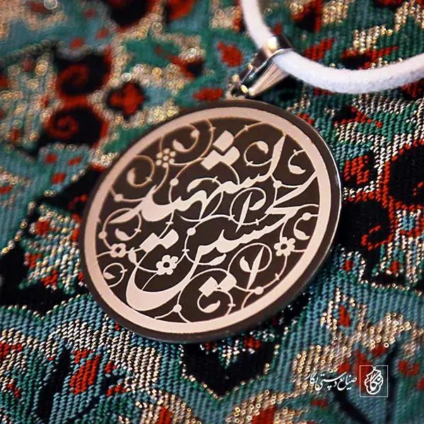 گردنبند الحسین شهید کد 60000 از جنس استیل ضدزنگ و ضد حساسیت با رنگ ثابت توسط زیورآلات نگار طراحی و ساخته شده است. این گردنبند با ضخامت 1 میلیمتر در ابعاد 2.5 تا 4 سانتیمتر نسبت به سفارش مشتری قابل ساخت است. تمام محصولات در فروشگاه زیورآلات نگار بعد از خرید ساخته خواهد شد و بین 7 تا 15 روز به دست مشتریان گرامی خواهد رسید.
