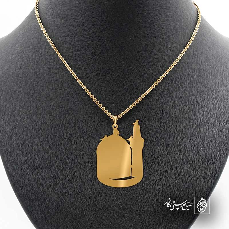 گردنبند گنبد حرم کد 6065 از جنس استیل ضدزنگ و ضد حساسیت با رنگ ثابت توسط زیورآلات نگار طراحی و ساخته شده است. این گردنبند با ضخامت 1 میلیمتر در ابعاد 2.5 تا 4 سانتیمتر نسبت به سفارش مشتری قابل ساخت است. تمام محصولات در فروشگاه زیورآلات نگار بعد از خرید ساخته میشود و بین 7 تا 15 روز به دست شما مشتریان گرامی میرسد.