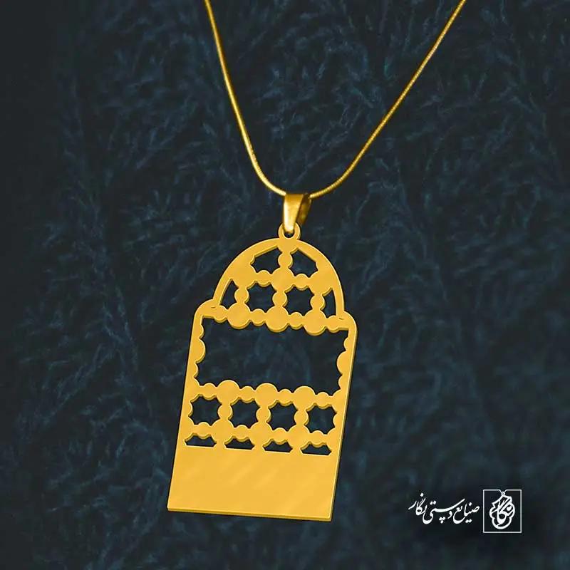 گردنبند ضریح حرم کد 6071 از جنس استیل ضدزنگ و ضد حساسیت با رنگ ثابت توسط زیورآلات نگار طراحی و ساخته شده است. این گردنبند با ضخامت 1 میلیمتر در ابعاد 2.5 تا 4 سانتیمتر نسبت به سفارش مشتری قابل ساخت است. تمام محصولات در فروشگاه زیورآلات نگار بعد از خرید ساخته میشود و بین 7 تا 15 روز به دست شما مشتریان گرامی میرسد.
