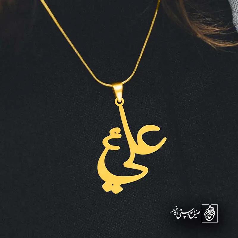 گردنبند علی (ع) کد 6083 از جنس استیل ضدزنگ و ضد حساسیت با رنگ ثابت توسط زیورآلات نگار طراحی و ساخته شده است. این گردنبند با ضخامت 1 میلیمتر در ابعاد 2.5 تا 4 سانتیمتر نسبت به سفارش مشتری قابل ساخت است. تمام محصولات در فروشگاه زیورآلات نگار بعد از خرید ساخته میشود و بین 7 تا 15 روز به دست شما مشتریان گرامی میرسد.