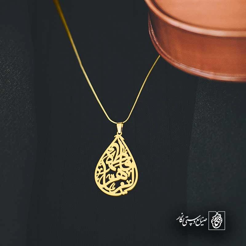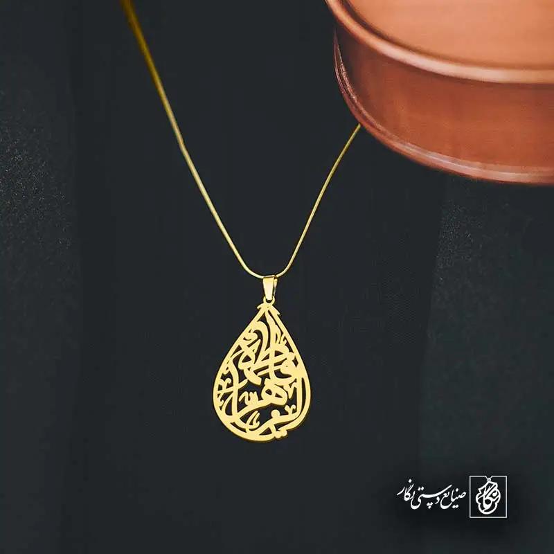 گردنبند فاطمه الزهرا کد 6133 از جنس استیل ضدزنگ و ضد حساسیت با رنگ ثابت توسط زیورآلات نگار طراحی و ساخته شده است. این گردنبند با ضخامت 1 میلیمتر در ابعاد 2.5 تا 4 سانتیمتر نسبت به سفارش مشتری قابل ساخت است. تمام محصولات در فروشگاه زیورآلات نگار بعد از خرید ساخته میشود و بین 7 تا 15 روز به دست شما مشتریان گرامی میرسد.