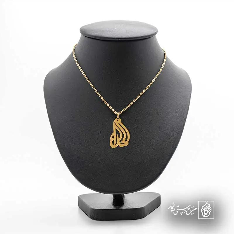گردنبند خدا کد 6221 از جنس استیل ضدزنگ و ضد حساسیت با رنگ ثابت توسط زیورآلات نگار طراحی و ساخته شده است. این گردنبند با ضخامت 1 میلیمتر در ابعاد 2.5 تا 4 سانتیمتر نسبت به سفارش مشتری قابل ساخت است. تمام محصولات در فروشگاه زیورآلات نگار بعد از خرید ساخته میشود و بین 7 تا 15 روز به دست شما مشتریان گرامی میرسد.