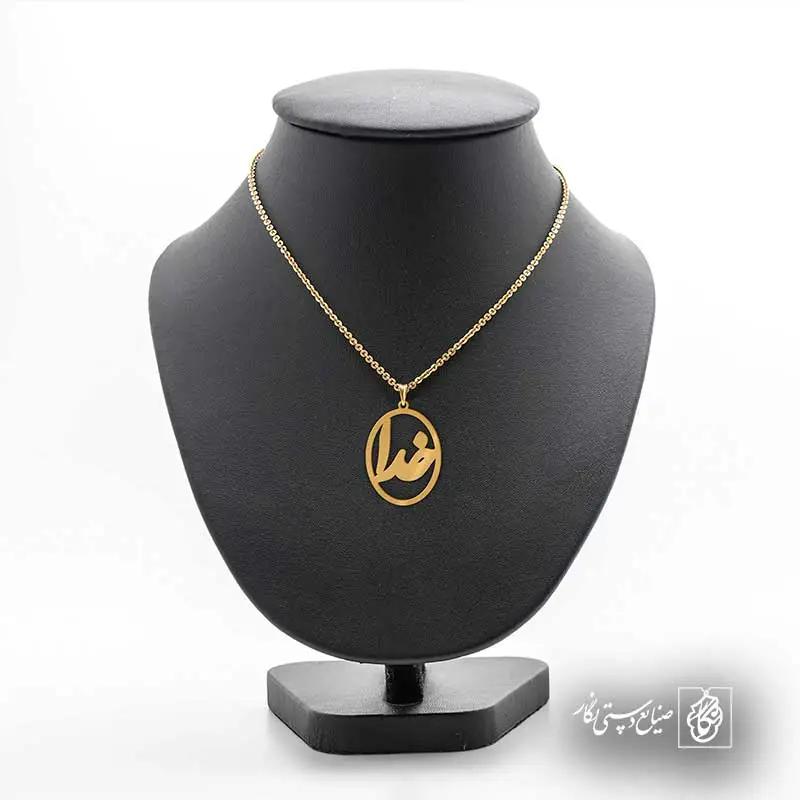 گردنبند خدا کد 6259 از جنس استیل ضدزنگ و ضد حساسیت با رنگ ثابت توسط زیورآلات نگار طراحی و ساخته شده است. این گردنبند با ضخامت 1 میلیمتر در ابعاد 2.5 تا 4 سانتیمتر نسبت به سفارش مشتری قابل ساخت است. تمام محصولات در فروشگاه زیورآلات نگار بعد از خرید ساخته میشود و بین 7 تا 15 روز به دست شما مشتریان گرامی میرسد.