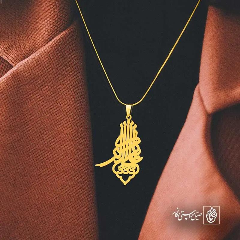 گردنبند علی اکبر 333 کد 6288 از جنس استیل ضدزنگ و ضد حساسیت با رنگ ثابت توسط زیورآلات نگار طراحی و ساخته شده است. این گردنبند با ضخامت 1 میلیمتر در ابعاد 2.5 تا 4 سانتیمتر نسبت به سفارش مشتری قابل ساخت است. تمام محصولات در فروشگاه زیورآلات نگار بعد از خرید ساخته میشود و بین 7 تا 15 روز به دست شما مشتریان گرامی میرسد.