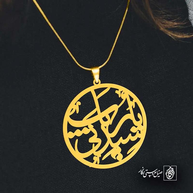 گردنبند سیدتی یا رباب کد 6304 از جنس استیل ضدزنگ و ضد حساسیت با رنگ ثابت توسط زیورآلات نگار طراحی و ساخته شده است. این گردنبند با ضخامت 1 میلیمتر در ابعاد 2.5 تا 4 سانتیمتر نسبت به سفارش مشتری قابل ساخت است. تمام محصولات در فروشگاه زیورآلات نگار بعد از خرید ساخته میشود و بین 7 تا 15 روز به دست شما مشتریان گرامی میرسد.