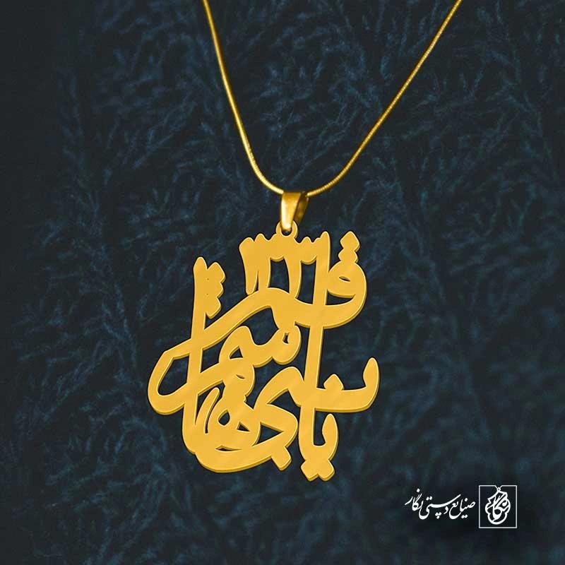 گردنبند یا قمر بنی هاشم 133 کد 6325 از جنس استیل ضدزنگ و ضد حساسیت با رنگ ثابت توسط زیورآلات نگار طراحی و ساخته شده است. این گردنبند با ضخامت 1 میلیمتر در ابعاد 2.5 تا 4 سانتیمتر نسبت به سفارش مشتری قابل ساخت است. تمام محصولات در فروشگاه زیورآلات نگار بعد از خرید ساخته میشود و بین 7 تا 15 روز به دست شما مشتریان گرامی میرسد.