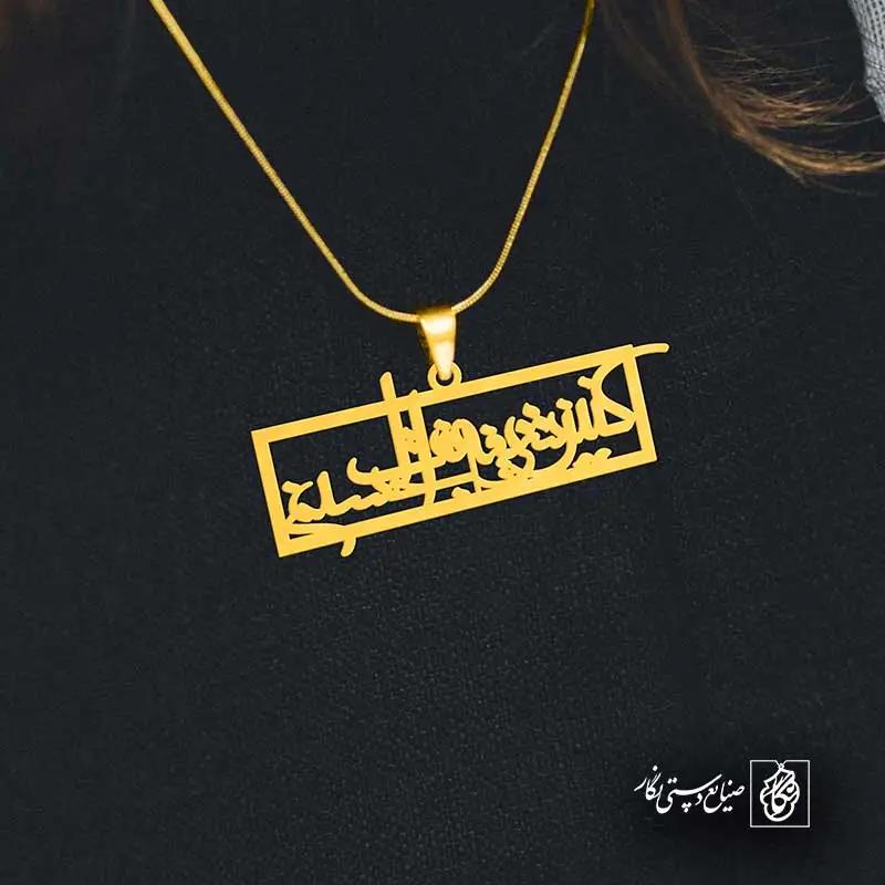 گردنبند کنیز شفیعتی الحسینم کد 6937 از جنس استیل ضدزنگ و ضد حساسیت با رنگ ثابت توسط زیورآلات نگار طراحی و ساخته شده است. این گردنبند با ضخامت 1 میلیمتر در ابعاد 2.5 تا 4 سانتیمتر نسبت به سفارش مشتری قابل ساخت است. تمام محصولات در فروشگاه زیورآلات نگار بعد از خرید ساخته میشود و بین 7 تا 15 روز به دست شما مشتریان گرامی میرسد.