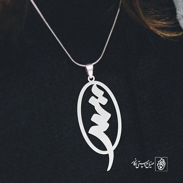 گردنبند حرف ش کد 3740 از جنس استیل ضدزنگ و ضد حساسیت با رنگ ثابت توسط زیورآلات نگار طراحی و ساخته شده است. این گردنبند با ضخامت 1 میلیمتر در ابعاد 2.5 تا 4 سانتیمتر نسبت به سفارش مشتری قابل ساخت است.