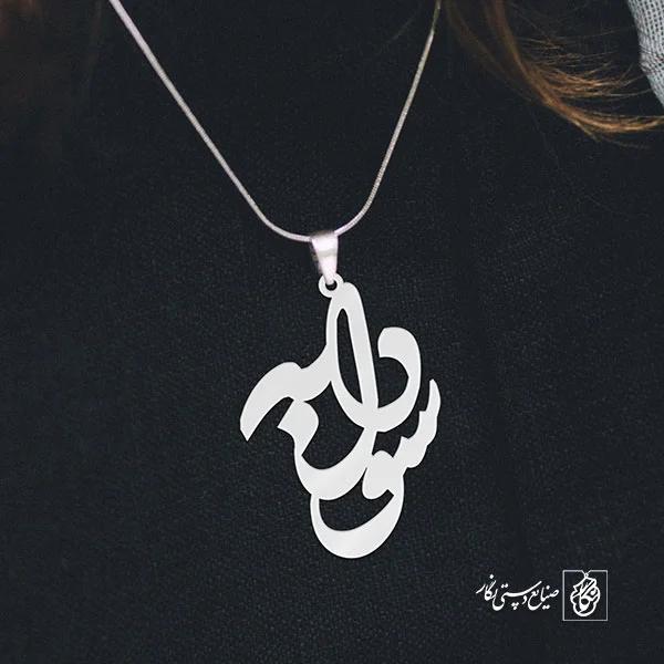 گردنبند اسم سودابه کد 1193 از جنس استیل ضدزنگ و ضد حساسیت با رنگ ثابت توسط زیورآلات نگار طراحی و ساخته شده است. این گردنبند با ضخامت 1 میلیمتر در ابعاد 2.5 تا 4 سانتیمتر نسبت به سفارش مشتری قابل ساخت است. تمام محصولات در فروشگاه زیورآلات نگار بعد از خرید ساخته خواهد شد و بین 7 تا 15 روز به دست مشتریان گرامی خواهد رسید.