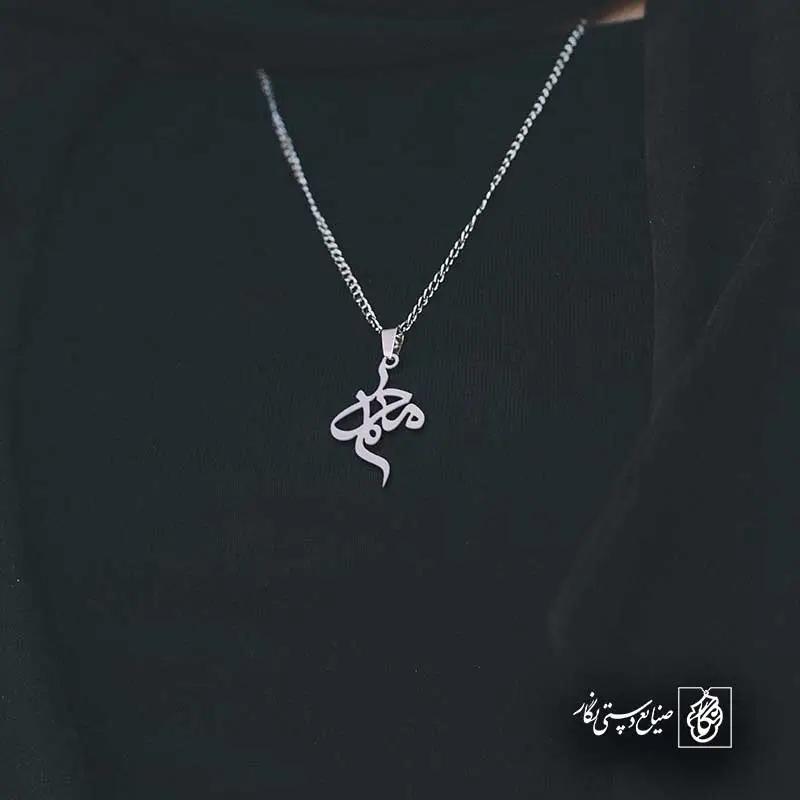 گردنبند اسم محمد کد 5180 از جنس استیل ضدزنگ و ضد حساسیت با رنگ ثابت توسط زیورآلات نگار طراحی و ساخته شده است. این گردنبند با ضخامت 1 میلیمتر در ابعاد 2.5 تا 4 سانتیمتر نسبت به سفارش مشتری قابل ساخت است. تمام محصولات در فروشگاه زیورآلات نگار بعد از خرید ساخته میشود و بین 7 تا 15 روز به دست شما مشتریان گرامی میرسد.