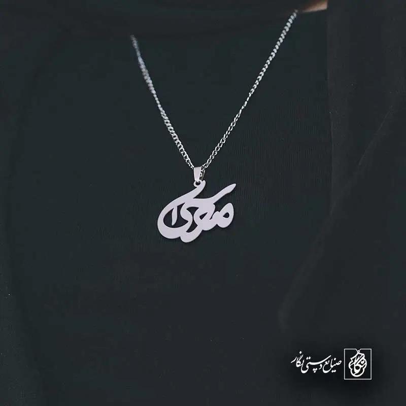 گردنبند اسم موسی کد 5203 از جنس استیل ضدزنگ و ضد حساسیت با رنگ ثابت توسط زیورآلات نگار طراحی و ساخته شده است. این گردنبند با ضخامت 1 میلیمتر در ابعاد 2.5 تا 4 سانتیمتر نسبت به سفارش مشتری قابل ساخت است. تمام محصولات در فروشگاه زیورآلات نگار بعد از خرید ساخته میشود و بین 7 تا 15 روز به دست شما مشتریان گرامی میرسد.