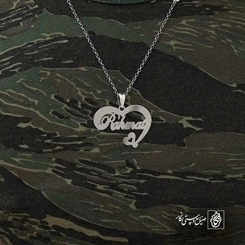 گردنبند اسم Rahmat کد 5238 از جنس استیل ضدزنگ و ضد حساسیت با رنگ ثابت توسط زیورآلات نگار طراحی و ساخته شده است. این گردنبند با ضخامت 1 میلیمتر در ابعاد 2.5 تا 4 سانتیمتر نسبت به سفارش مشتری قابل ساخت است. تمام محصولات در فروشگاه زیورآلات نگار بعد از خرید ساخته میشود و بین 7 تا 15 روز به دست شما مشتریان گرامی میرسد.