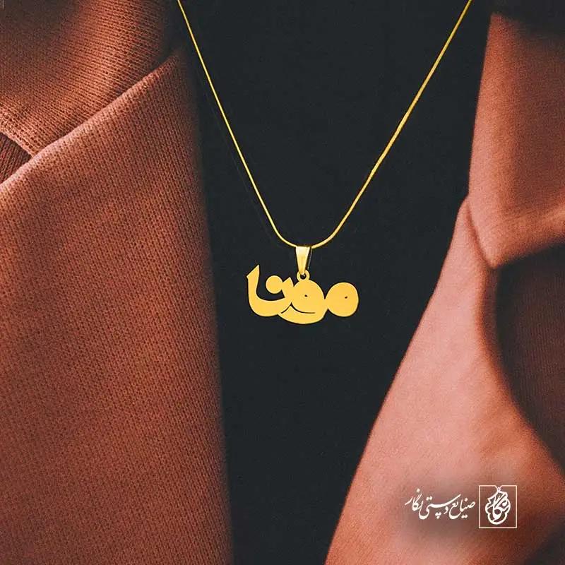 گردنبند اسم مونا کد 5487 از جنس استیل ضدزنگ و ضد حساسیت با رنگ ثابت توسط زیورآلات نگار طراحی و ساخته شده است. این گردنبند با ضخامت 1 میلیمتر در ابعاد 2.5 تا 4 سانتیمتر نسبت به سفارش مشتری قابل ساخت است. تمام محصولات در فروشگاه زیورآلات نگار بعد از خرید ساخته میشود و بین 7 تا 15 روز به دست شما مشتریان گرامی میرسد.