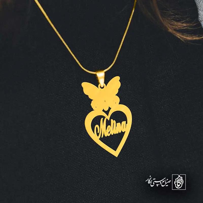 گردنبند اسم Melina کد 5556 از جنس استیل ضدزنگ و ضد حساسیت با رنگ ثابت توسط زیورآلات نگار طراحی و ساخته شده است. این گردنبند با ضخامت 1 میلیمتر در ابعاد 2.5 تا 4 سانتیمتر نسبت به سفارش مشتری قابل ساخت است. تمام محصولات در فروشگاه زیورآلات نگار بعد از خرید ساخته میشود و بین 7 تا 15 روز به دست شما مشتریان گرامی میرسد.