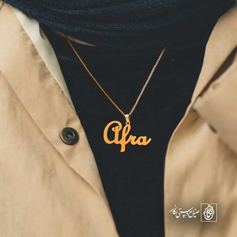 گردنبند اسم afra کد 5618 از جنس استیل ضدزنگ و ضد حساسیت با رنگ ثابت توسط زیورآلات نگار طراحی و ساخته شده است. این گردنبند با ضخامت 1 میلیمتر در ابعاد 2.5 تا 4 سانتیمتر نسبت به سفارش مشتری قابل ساخت است. تمام محصولات در فروشگاه زیورآلات نگار بعد از خرید ساخته میشود و بین 7 تا 15 روز به دست شما مشتریان گرامی میرسد.