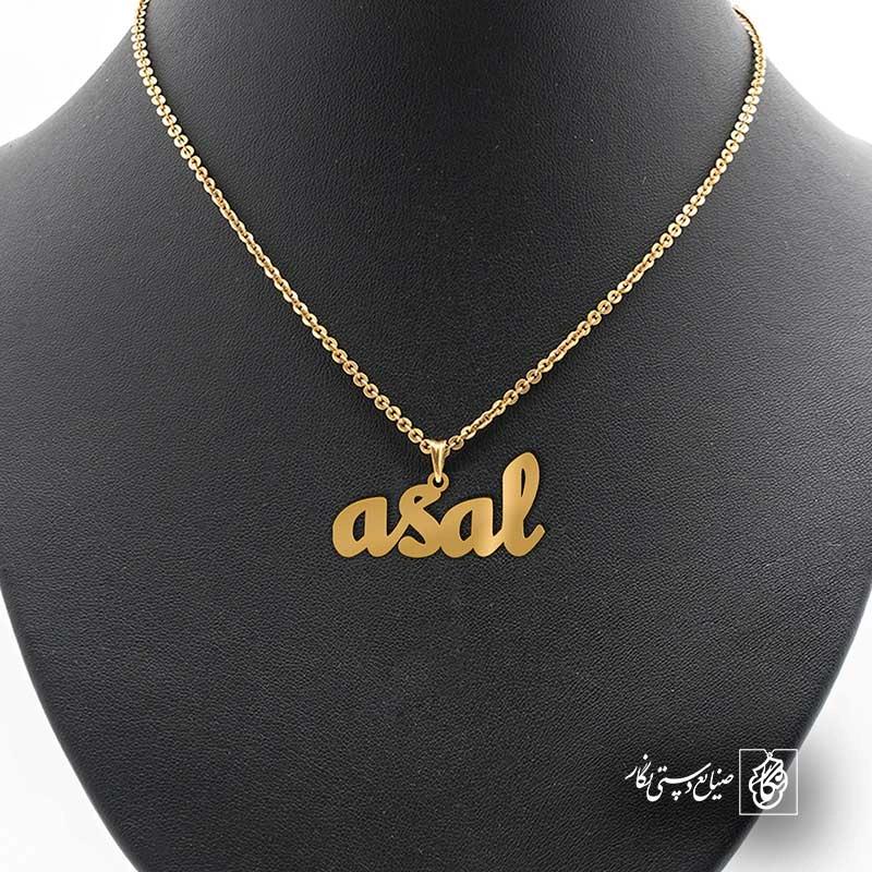 گردنبند اسم asal کد 5627 از جنس استیل ضدزنگ و ضد حساسیت با رنگ ثابت توسط زیورآلات نگار طراحی و ساخته شده است. این گردنبند با ضخامت 1 میلیمتر در ابعاد 2.5 تا 4 سانتیمتر نسبت به سفارش مشتری قابل ساخت است. تمام محصولات در فروشگاه زیورآلات نگار بعد از خرید ساخته میشود و بین 7 تا 15 روز به دست شما مشتریان گرامی میرسد.