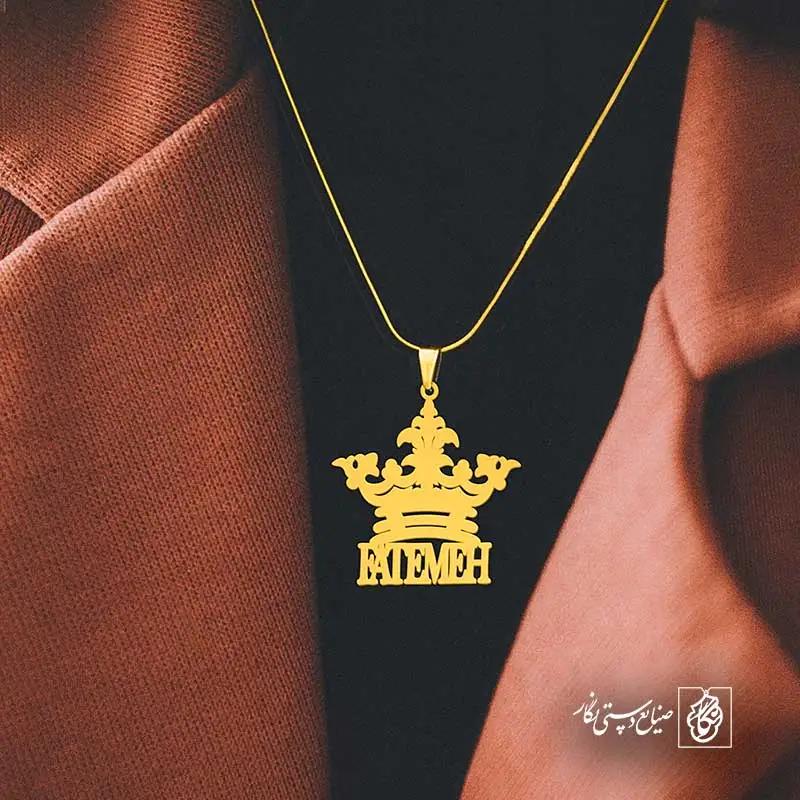 گردنبند اسم fatemeh طرح تاج کد 5641 از جنس استیل ضدزنگ و ضد حساسیت با رنگ ثابت توسط زیورآلات نگار طراحی و ساخته شده است. این گردنبند با ضخامت 1 میلیمتر در ابعاد 2.5 تا 4 سانتیمتر نسبت به سفارش مشتری قابل ساخت است. تمام محصولات در فروشگاه زیورآلات نگار بعد از خرید ساخته میشود و بین 7 تا 15 روز به دست شما مشتریان گرامی میرسد.